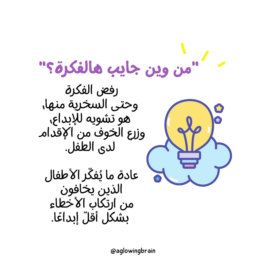 البعض ينظر للإبداع على إنه قدرة فطريّة،إما أنّنا نولد مبدعين أو لا 😅😅وهذا ليس صحيحًا،فالإبداع هو طريقة للتفكير،قابلة للتنمية والتطوير.أحيانا بتصرفاتنا وبدون وعي منا،نخنق الإبداع😵😵فلندرك ذلك ونصححه.